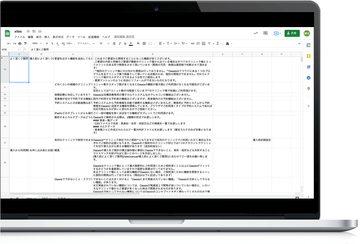 スプレッドシートの内容を読み込んでサイトを作成するのでメモ感覚でサイトが構築できます。あまり時間をかけたくないマニュアル・FAQサイトの構築に最適です。